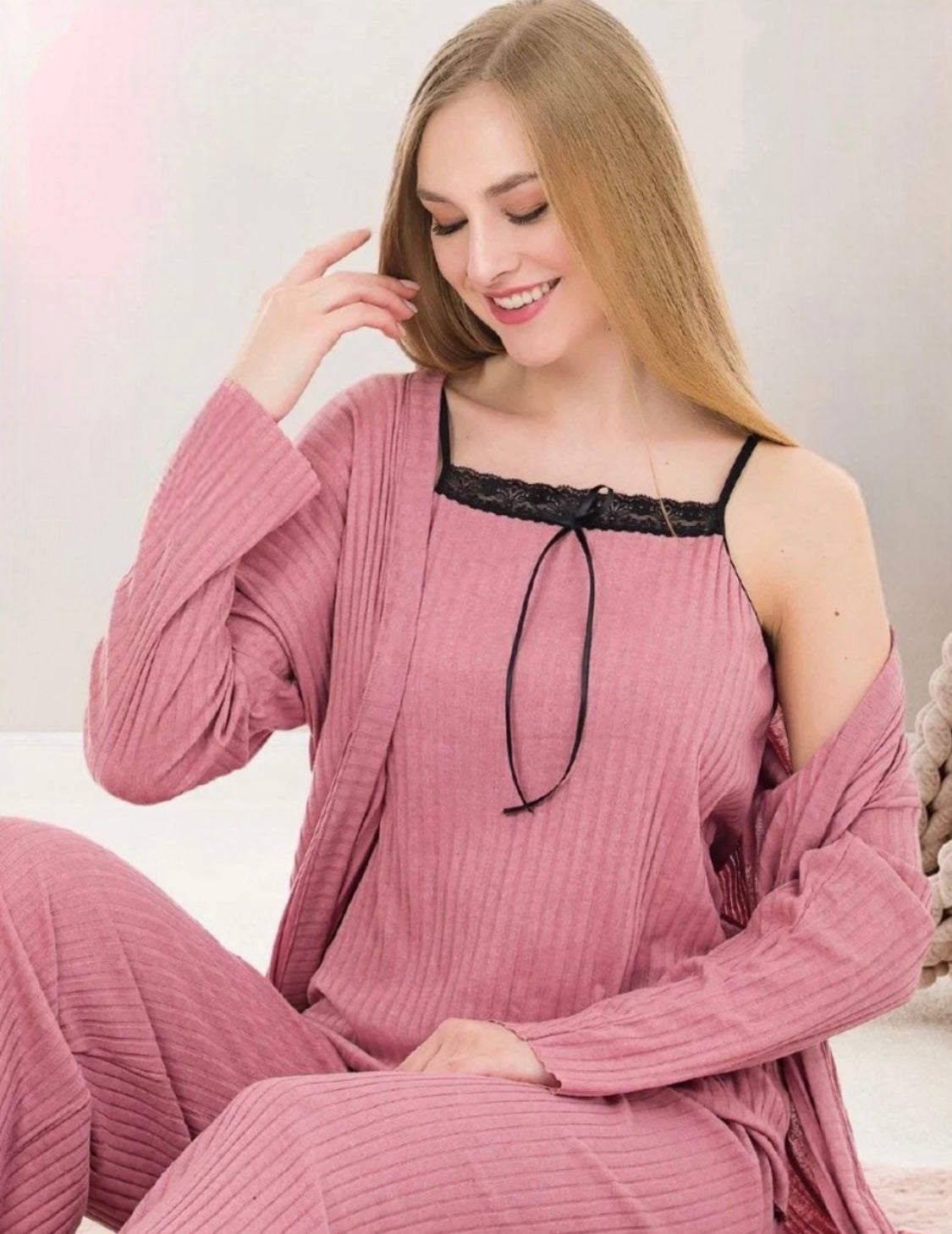 Το σετ αποτελείται από Ρομπάκι τύπου κιμονό,φανελάκι,παντελόνι σε ίσια γραμμή.