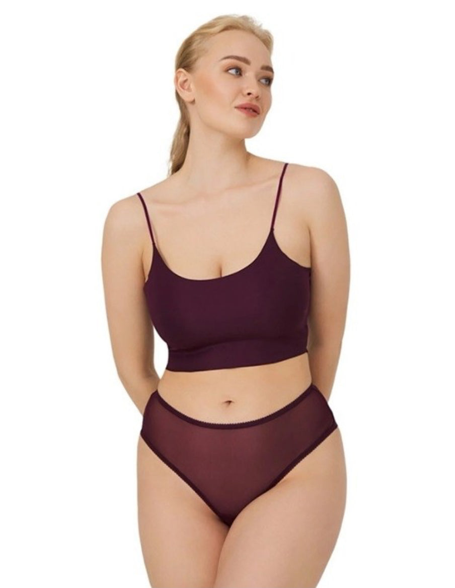 Εσώρουχο big size σε δύο χρώματα,με διαφανές ύφασμα στο μπροστά μέρος και χιαστί σατέν ύφασμα στο πάνω πίσω μέρος,laser cut.